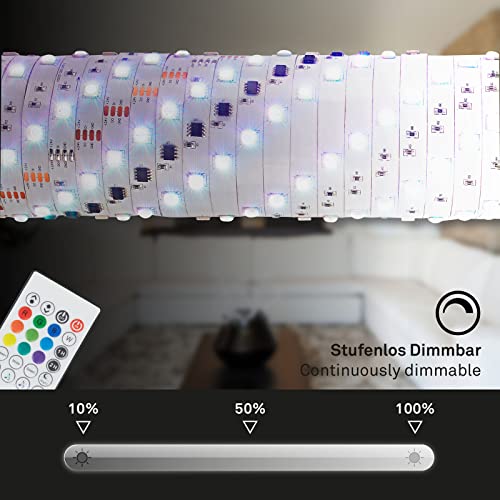 Controllate comodamente la striscia RGBIC dimmerabile tramite telecomando. La striscia luminosa a LED può essere accorciata una volta ogni 20 cm nel punto contrassegnato per adattarla alle vostre esigenze.