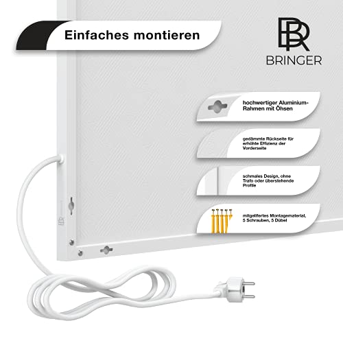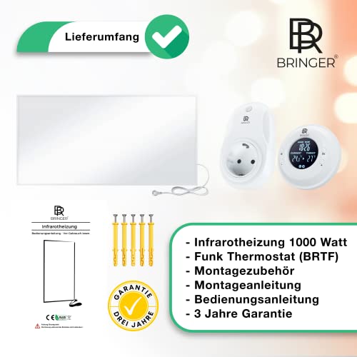 Bringer - Riscaldamento a infrarossi a parete, 1000 Watt, termostato (termostato con telecomando (BRTF)