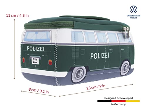 BRISA VW Collection - Borsa universale in neoprene per trucchi e cosmetici da viaggio Volkswagen con design bus T1 Bulli (Polizia/Verde/Grande)