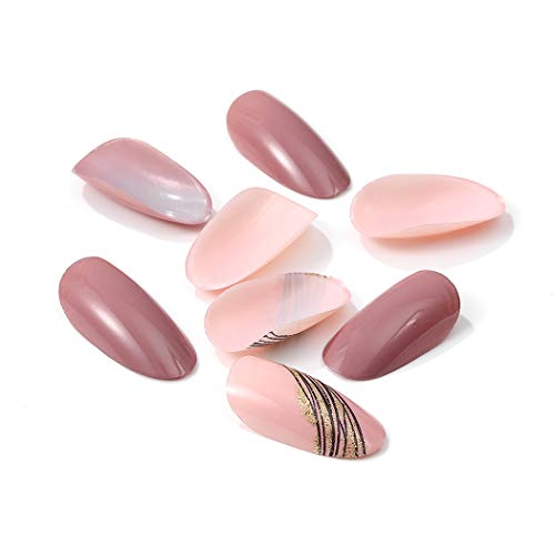 Brishow Bara Unghie finte corte rosa Glitter oro Stampa sulle unghie Ballerina Copertura totale acrilica Stick sulle unghie 24 pezzi per donne e ragazze