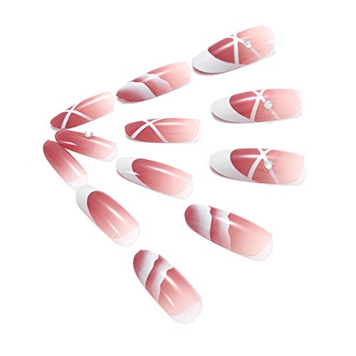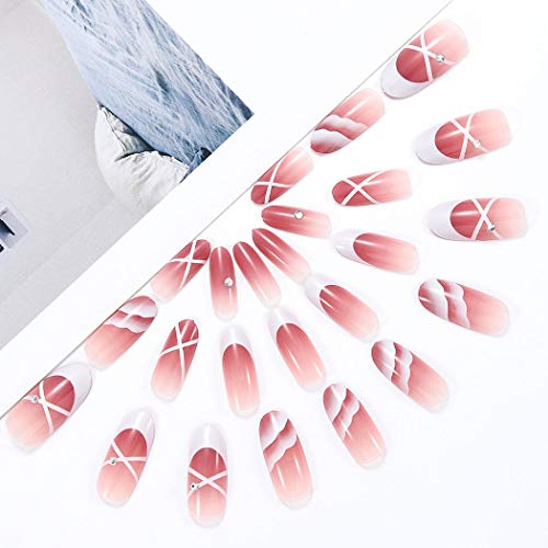 Brishow Bara Unghie finte francesi lunghe Ballerina Rosa Stampa acrilica sulle unghie Copertura completa Stick sulle unghie 24 pezzi per donne e ragazze