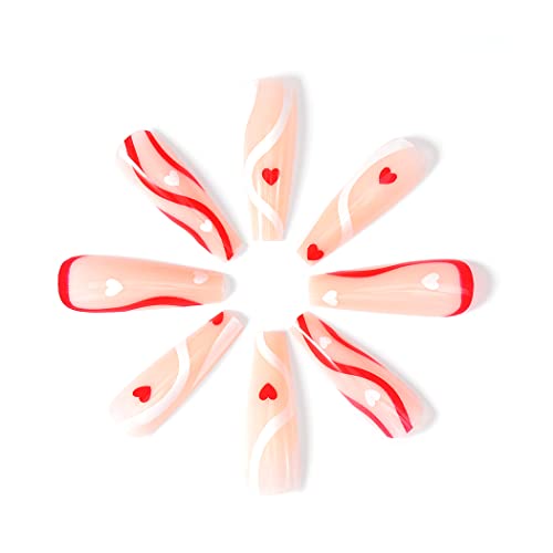 Brishow Bara Unghie finte lunghe Cuore rosso Stampa sulle unghie Ballerina Stick sulle unghie 24 pezzi per donne e ragazze