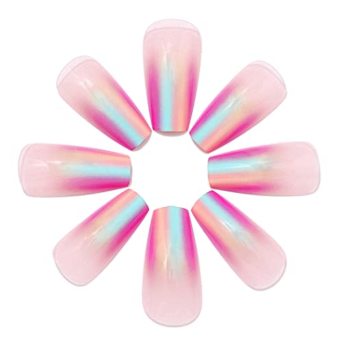 Brishow Shoat, Unghie finte a pressione, quadrate, a ballerina, in acrilico, 24 pezzi, per donne e ragazze (A)