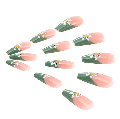 Brishow Unghie Finte Corte Unghie Finte Fiori Francesi Press On Nails Bellarina Stick Acrilico 24 Pezzi per Donne e Ragazze