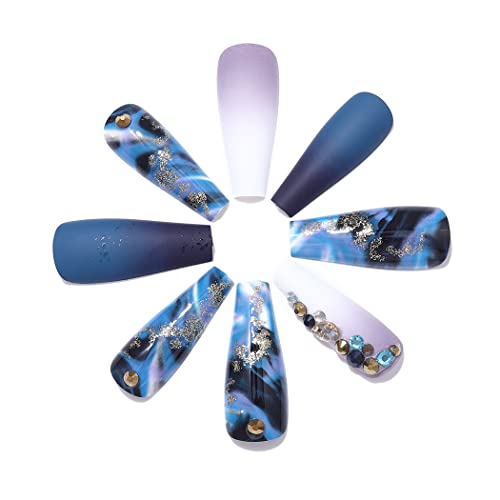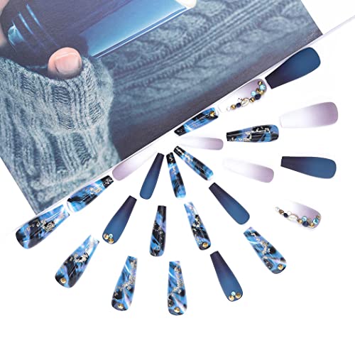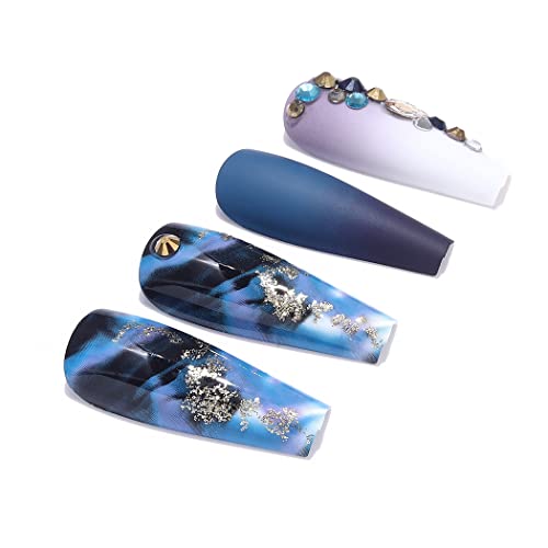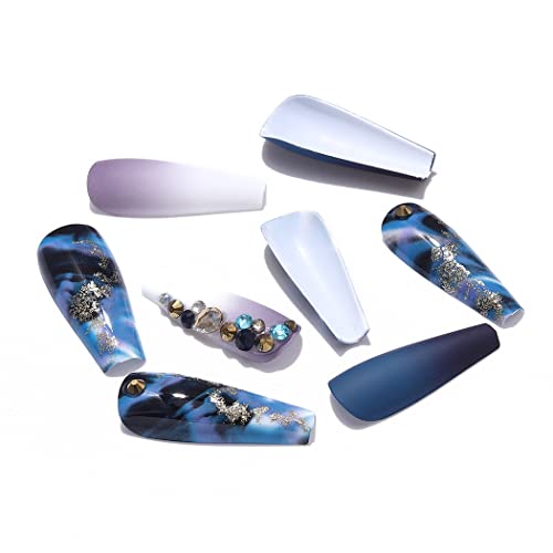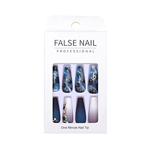 Brishow Unghie finte a forma di bara, con strass, unghie finte a ballerina, in acrilico, lunghe, 24 pezzi, per donne e ragazze