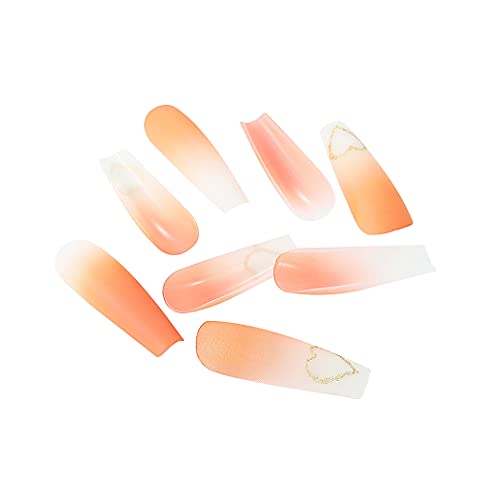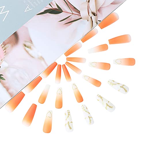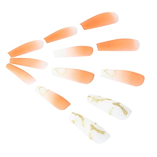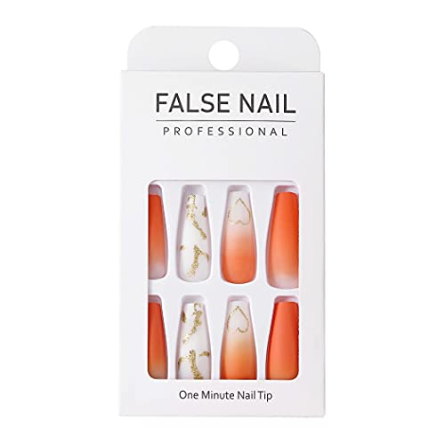 Brishow Unghie Finte Lunghe Unghie Finte Ballerina Acrilico Stampa su Unghie Arancione Stick su Unghie 24 Pezzi per Donne e Ragazze