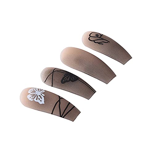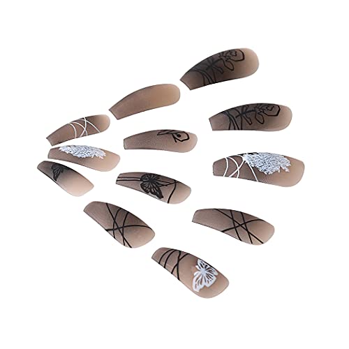 Brishow Unghie Finte Lunghe Farfalle Grigie Premere sulle Unghie Acrilico Stick su Unghie 24 Pezzi per Donne e Ragazze