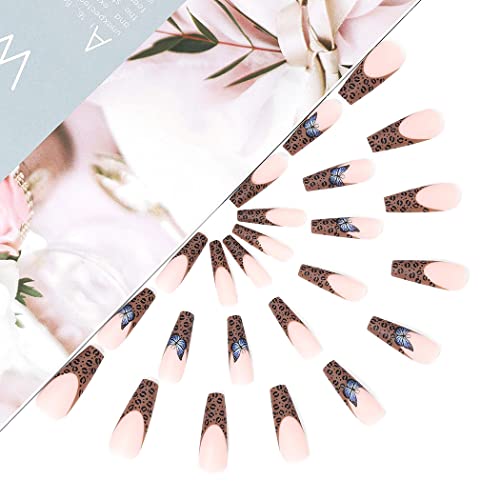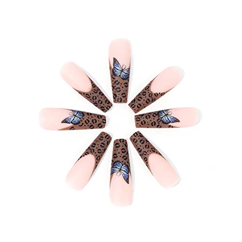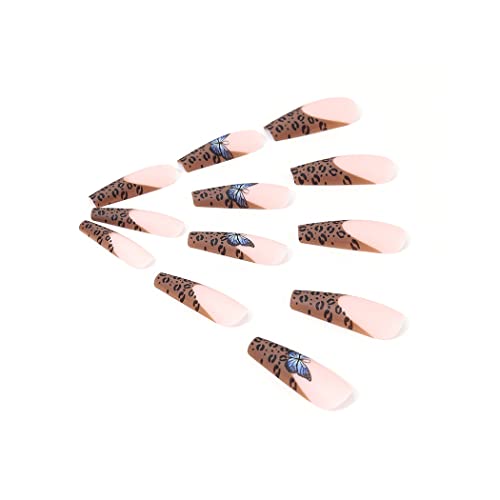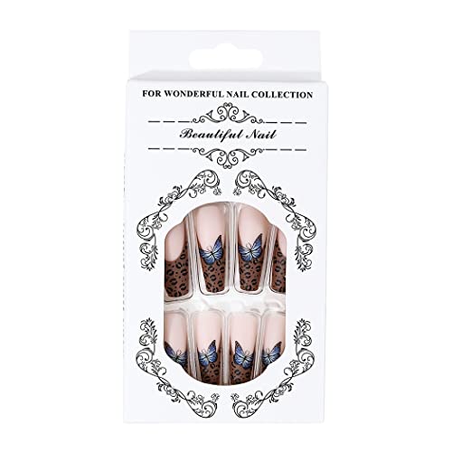 Brishow Unghie finte lunghe Leopard Butterfly Press on Nails Bellarina Stick in acrilico sulle unghie 24 pezzi per donne e ragazz