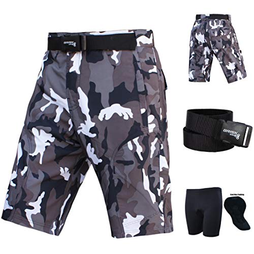 Brisk Bike Pantaloncini MTB, Coolamax Imbottito, Staccabile Rivestimento Interno, Free Style Formato Adulto (Camo Grey White, L)