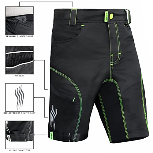 Brisk Bike pantaloni mtb pantaloncini ciclismo uomo Imbottito Vestibilità ampia Leggero pantaloni ciclismo uomo (Black/Green, Large)
