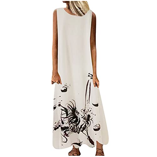 Briskorry Abito estivo da donna, casual, lungo, senza maniche, linea A, abito da spiaggia