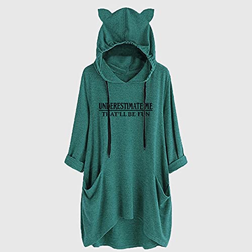 Briskorry Felpa da donna oversize con cappuccio invernale e tasca con motivo animal Graphic Tees con coulisse, Verde 1, L