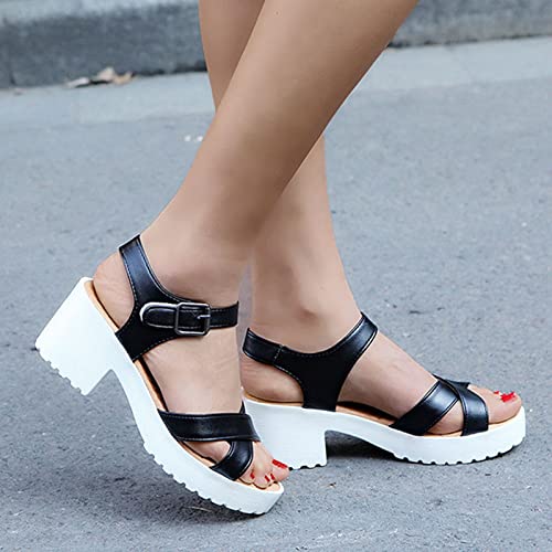Briskorry Sandali da donna con tacco, eleganti sandali in stile romana, aperti, con zeppa, con fibbia, sandali estivi e plateau