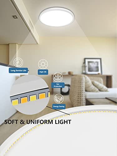 【 Lampada da soffitto rotonda ultra sottile 】 Circolare di 30 cm (11.81 pollici) di diametro e solo 2,5 cm (0,98 pollici) di spessore, sottile plafoniera LED piatta dall'aspetto moderno e semplice. Montaggio a filo, design a prova di polvere che impedisce efficacemente l'ingresso di polvere e zanzare, mantenendo la chiarezza e la luminosità di sempre.