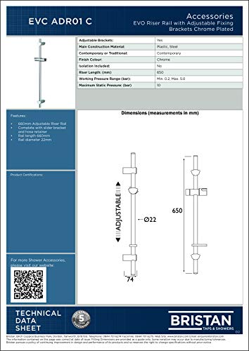 Bristan EVC ADR01 C EVO - Saliscendi cromato da doccia, con staffe regolabili