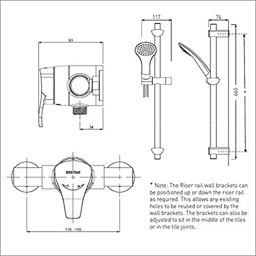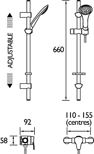 Bristan CAP2 SHXAR C Capri2 - Set doccia con saliscendi regolabile e valvola a parete termostatica, cromati