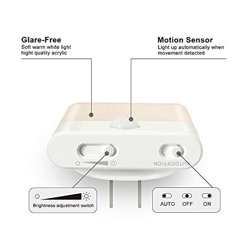 Brisun Presa per luce notturna con rilevatore di movimento, luce notturna 2 3 modalità (auto/ON/OFF), bianco caldo a risparmio energetico per camerette, corridoi, camere da letto, bagni, cucine.