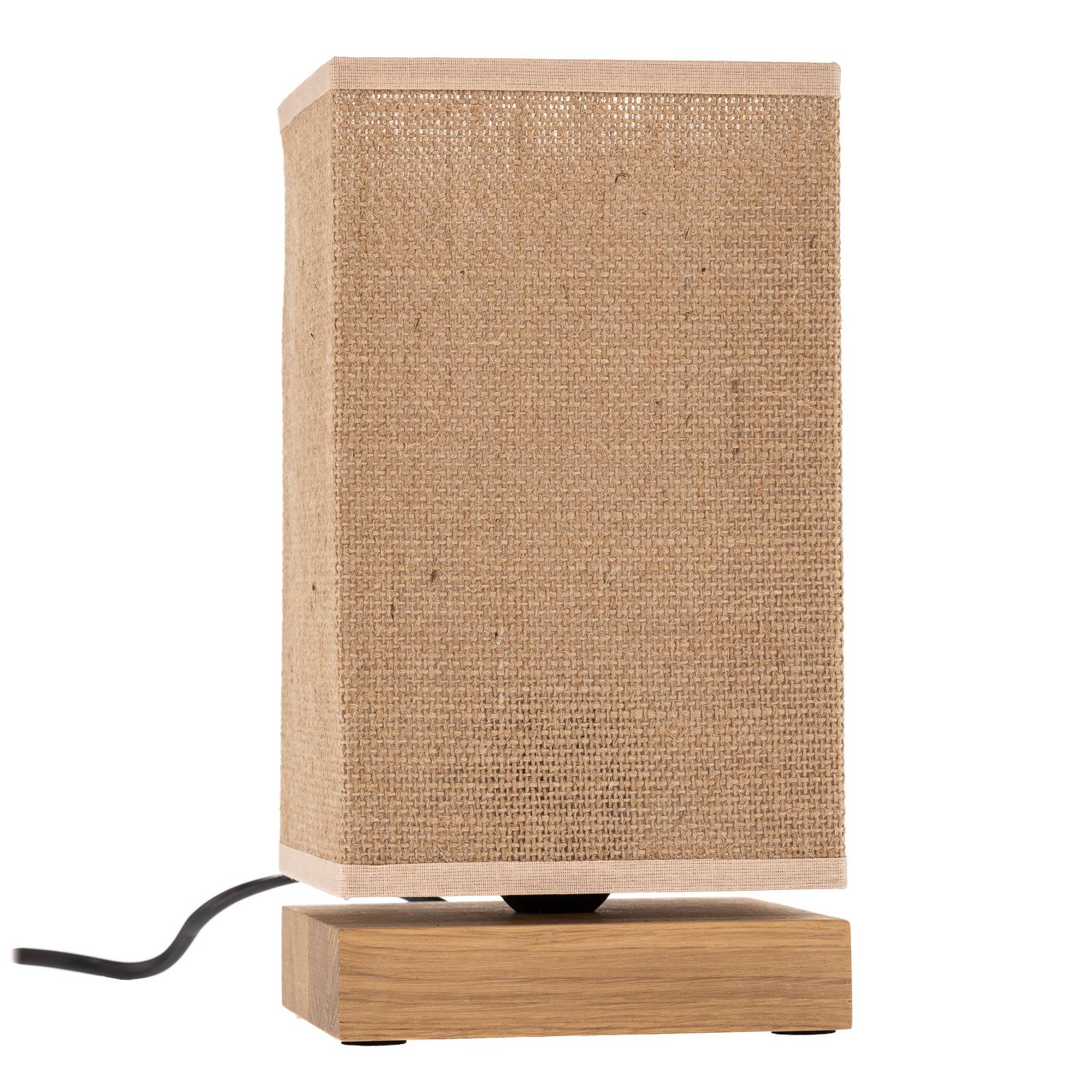 BRITOP Lampada da tavolo Canvas, rovere, angolare, beige, per soggiorno / sala da pranzo, legno di rovere, tessuto, E27, 40 W, lunghezza: 12 cm, larghezza: 12 cm, altezza: 24 cm