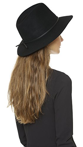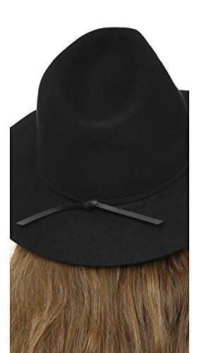 Cappello a tesa larga in feltro di lana con fascia sottile in pelle a bordo grezzo con cravatta annodata