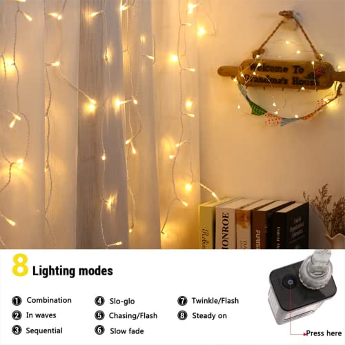 【Cascata Luci Natalizia】La lunghezza totale è di 19,25 m (catena luminosa da 14,25 m e linea elettrica da 5 m) con 480 LED a luci Natale esterno cascata bianco caldo. Puoi decorare camera da letto, finestra, muro per creare bellissimi display visivi.