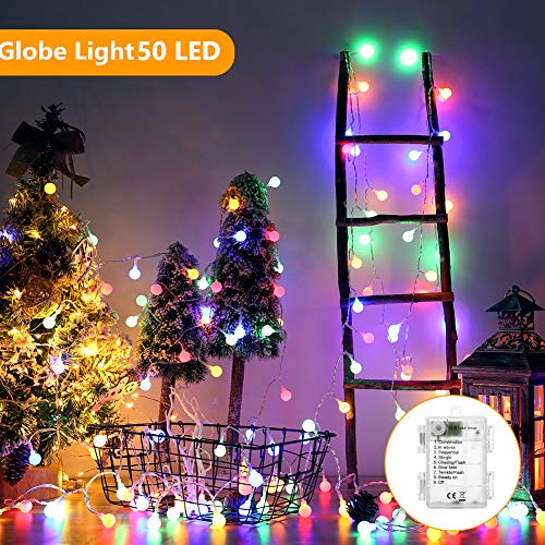 BrizLabs Catena Luminosa Globo 5M 50 LED Luci Stringa Natalizie 8 Modalità di Illuminazione Impermeabile, Bulbo Lampade per Interne, Esterno, Casa, Festa, Matrimonio, Giardino, Multicolore