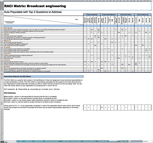 Broadcast engineering Self-Assessment ensures you don't miss anything: More than 630 critical Broadcast engineering success criteria in 7 RDMAICS (Recognize, Define, Measure, Analyze, Improve, Control and Sustain) steps with easy and quick navigating and answering for one or multiple participants
