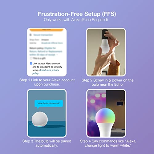 Broadlink BLE Flash Setup Smart Bulb LB4E27F, A60/E27/9W/800LM, Color Changing with Music Sync, Works with Alexa (2)