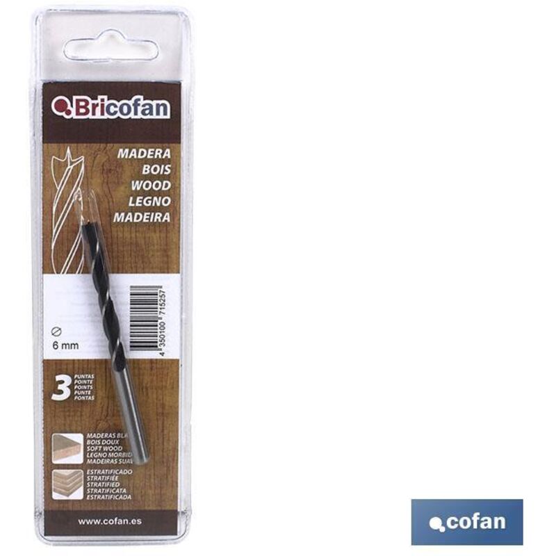 Punte Bricofan WOOD 3P Blister Bricofan WOOD Punte (Tre Punte) per legno duro e medio, confezionate in Blister termoformato in confezione singola. Alta: 1,50 Larghezza: 6,20 EAN: 8445187199086 Peso (kg): 0,023 Profondità: 20,50 Riferimento: 62200600