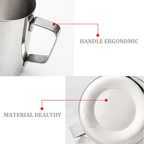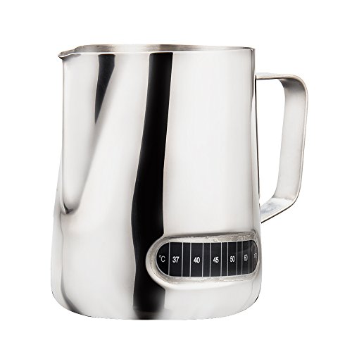 Brocca per latte in acciaio inox, 600 ml, con termometro, in acciaio inox, per montalatte, cappuccino, latte, caffetteria, art