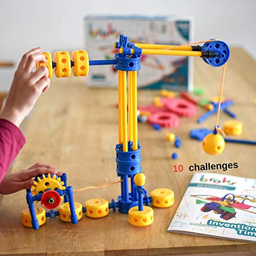 Broks - Invention Time: STEM Construction Set - Divertente e Innovativo con 124 Pezzi Inclusi Ingranaggi e bastoni Flessibili per Bambini da 4 a 10 Anni. Nuovo Modello