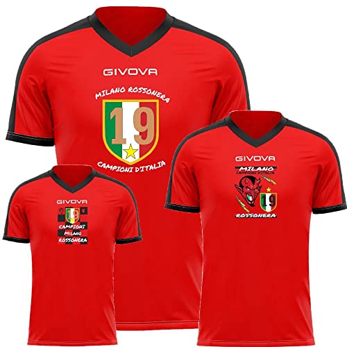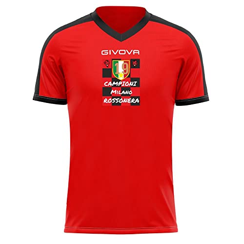 BrolloGroup Maglia Calcio GIVOVA T-Shirt Tecnica Milano Rosso Nera Campioni d'Italia 19 Scudetti PS 40538, Taglia unica