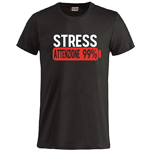 Brollogroup T-Shirt Uomo Stress Attenzione 99% Magliette Simpatiche PS 27431-A002 (4XL, Nero)