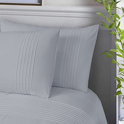 Set da letto di alta qualità: il copripiumino per letto matrimoniale in argento viene fornito con 2 federe plissettate. Questo set di biancheria da letto in argento include 1 copripiumino matrimoniale (200 x 200 cm) + 2 federe coordinate (50 x 75 cm). I copripiumini hanno una funzione abbottonata per un cambio senza problemi