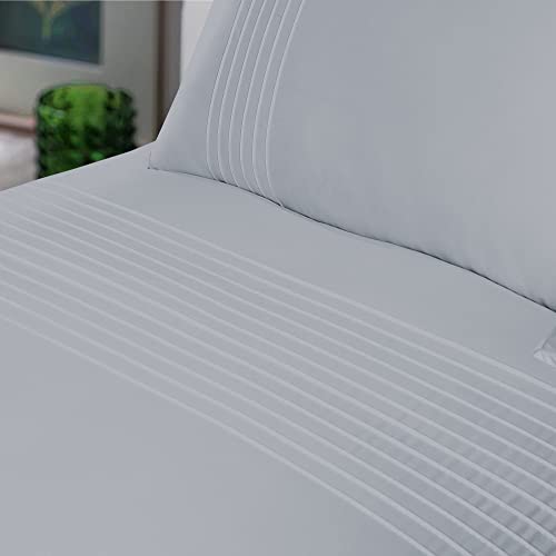 Bronwen Mathews Set copripiumino doppio plissettato a righe argentate, morbido e morbido, in microfibra, con 2 federe, facile da pulire, senza pieghe, set da 3 pezzi (argento, matrimoniale)
