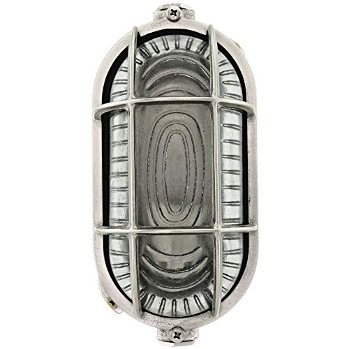 BrootZo Testudo Paratia ovale lampada da parete all'interno o all'esterno di luce impermeabile marino nautical lampada industriale (Nichel Mat)