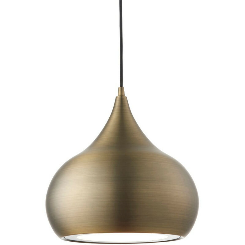 Endon Brosnan - Sospensione a soffitto a 1 luce a cupola in ottone antico opaco | Finitura: ottone antico opaco | Materiale: acciaio | Classificazione IP: IP20 | Altezza (cm): 190 | Diametro (cm): 30 | Numero di luci: 1 | Lampadina: LED | Kelvin: 4000 | Lumen: 1480 | Potenza (max): 18 | Peso (kg): 1,82 | Classe: 2 (doppio isolamento)