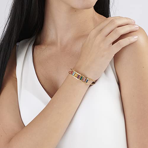 Bracciale rigido in acciaio 316Le pvd oro con cristalli baguettemontana, light rose, emerald, amethyst, topaz, aquamarine e scarlet.