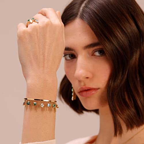 Bracciale rigido in acciaio 316L, finitura color oro e frange con cristalli Swarovski crystal, erinite, aquamarine, crystal moonlight e peridot. CONFEZIONE: originale Brosway