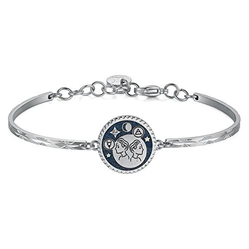 Bracciale semirigido in acciaio 316L con segno zodiacale gemelli, smalto blu glitterato e cristallo Swarovski crystal. Lunghezza Bracciale: Ø 70 mm. Scegli i gioielli Brosway ed esprimi il tuo stile e la tua personalità in tutte le occasioni