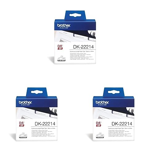 Brother DK-22214 Etichette originali a lunghezza continua, carta bianca, Dimensione 12 mm, lunghezza 30.48 m (Confezione da 3)