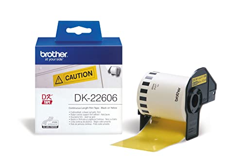 Brother DK-22606 Nastro di Etichette di Pellicola a Lunghezza Continua, Nero e Giallo, Dimensione 62 mm, Lunghezza 15.24 m