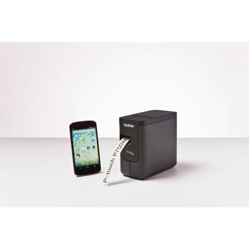 Brother PT-P750W. Tipo nastro: HSE/TZe. Risoluzione massima: 180 x 180 DPI, Velocità di stampa: 30 mm/s. Tecnologia di connessione: Con cavo e senza cavo. Tipo batteria: Batteria integrata, Tecnologia batteria: Ioni di Litio. Colore del prodotto: Nero