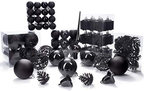 Brubaker Set di 101 Accessori Decorativi per L'Albero di Natale - addobbi Natalizie in Color Nero - Diverse Forme di Palline ed Un Puntale per Albero di Natale