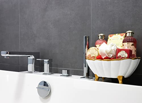BRUBAKER set da bagno 'Peony Vanille Love' presentato in una mini vasca da bagno in ceramica a forma di conchiglia, 7 pezzi