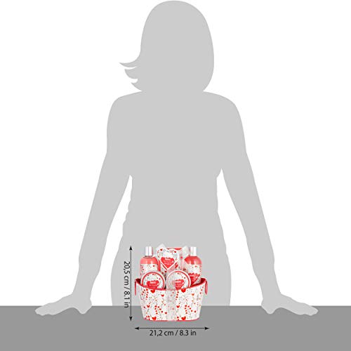 BRUBAKER Cosmetics 6-pz. Bagno e Doccia Set Fragola Sweet Love in Deco Cestino di Metallo - Set Regalo di Cura con Design di Fiori - Rosa