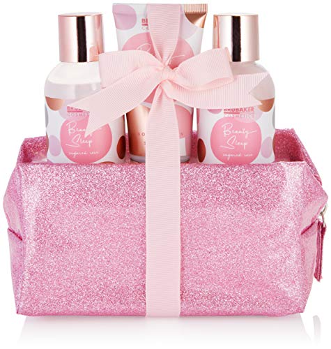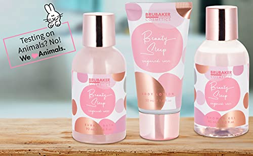 BRUBAKER Cosmetics Set Bagno e Doccia Beauty Sleep Sugared Rose - Profumo Rosa - Set Regalo in 4 Pezzi in Pratica Borsa Da Toilette - Oro Rosa