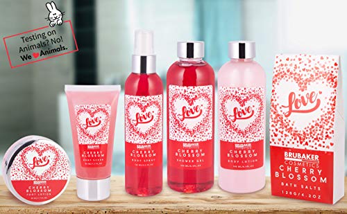 BRUBAKER Cosmetics Set bagno e doccia Love - con profumo di fiori di ciliegio - set regalo da 8 pezzi in vasca decorativa