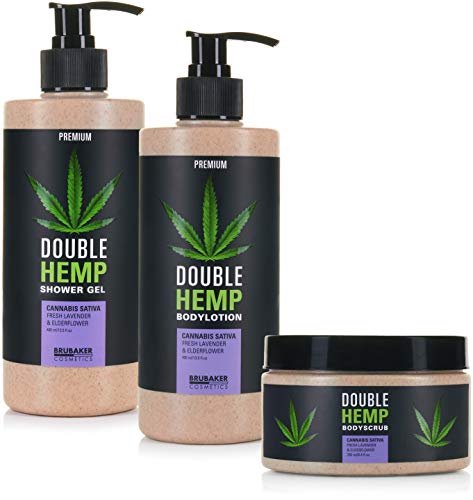 BRUBAKER Cosmetics Set Bagno e Doccia All'olio di Canapa, Lavanda Fresca e Fiori di Sambuco con Vassoio Decorativo in Legno