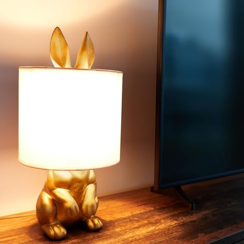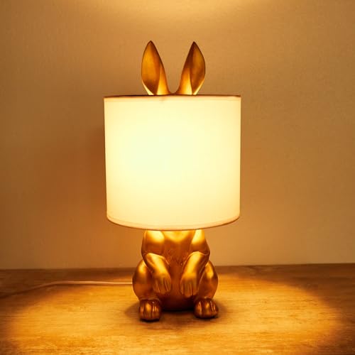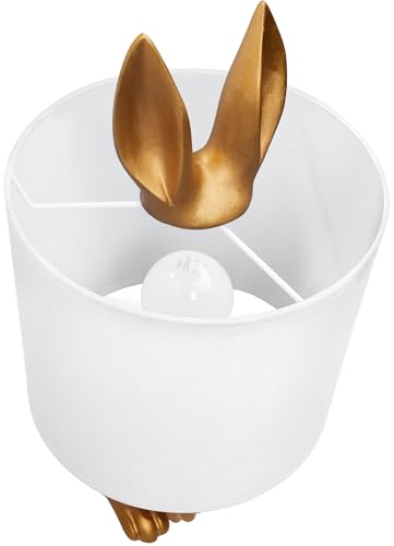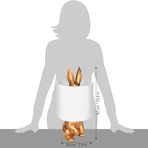 Brubaker Lampada da Tavolo o da Comodino Coniglio Dorato - Lampada da Tavolo con Base in Ceramica e Paralume in Tessuto - Altezza 42 cm, Oro Bianco