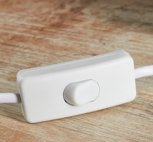 Cavo bianco (circa 140 cm), con interruttore a levetta e spina euro piatta. L'interruttore a levetta si trova dopo circa 50 cm di cavo (misurato dalla lampada)